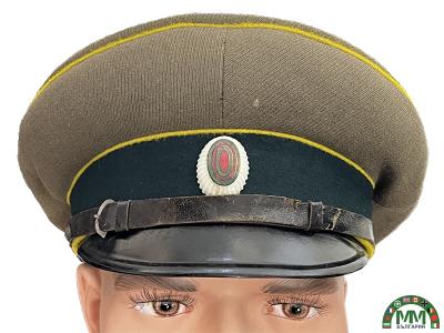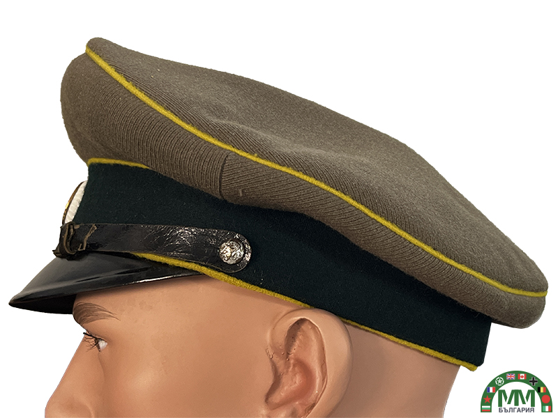 Casquette de service du modèle réglementaire adopté par l’armée royale bulgare à partir de 1936, directement influencée par la Schirmmütze allemande.