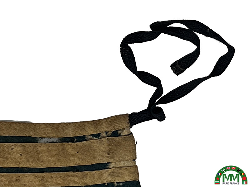 Ce style de marquage correspond très précisément aux années 1910–1940, période où les régiments appliquaient des numéros sur les fanions de terrain. C’est exactement ce qu’on voit sur les fanions d’escadrons et de chefs de corps des Hussards à la fin de la IIIème République. Les attaches en ruban noir sont un détail déterminant. Elles montrent les rubans noirs cousus dans l’ourlet, noués ensuite. C’est une méthode spécifique aux fanions montés sur une hampe courte, généralement portée par un cavalier porte-fanion ou fixée sur la selle / au fourreau de hampe du cheval du colonel.