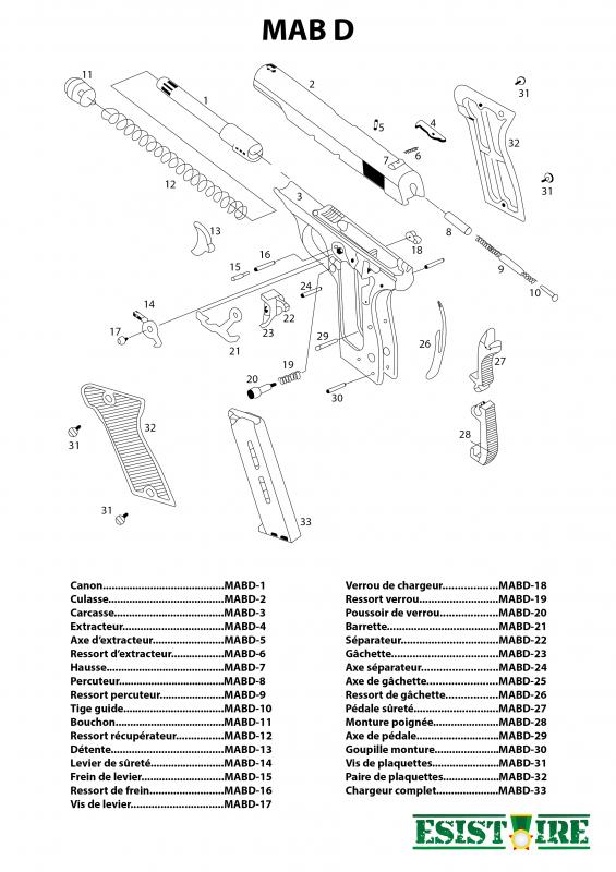 MABD-2 Ensemble culasse de pistolet MAB D  |
