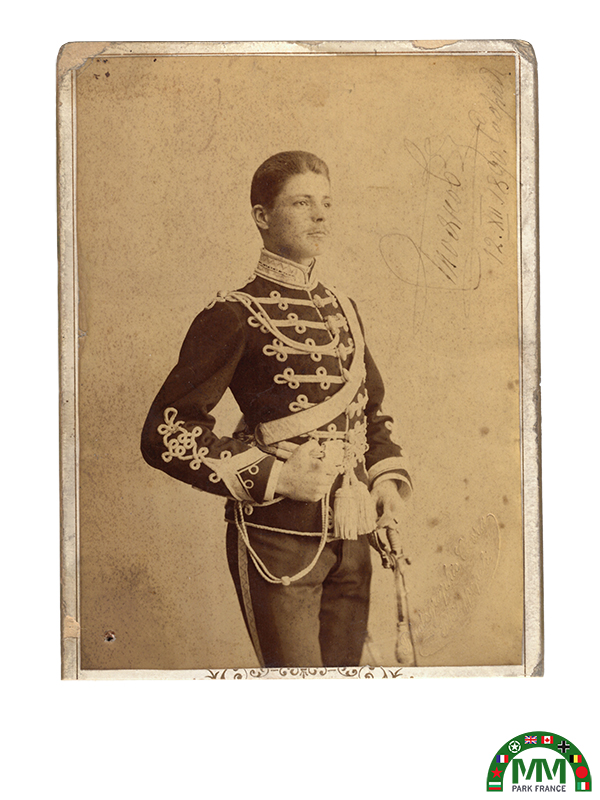 Ce type d’uniforme : brandebourgs et tresses → renvoie à une esthétique de cavalerie légère / garde d’honneur, très utilisée dans les gardes royales européennes à la fin du XIX? siècle.